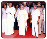E.K.Nayanar, the former Chief Minister of Kerala visited the Circus in 1997, at Putharikandam Maidanam, Trivandrum . Cracking a joke, creating a mood of laughter and happiness is an art which was a typical aspect of his conversation. His sense of humour was the secret of his magnetism. Ajay Shankar gave a memorandum to E.K.Nayanar highlighting the need to increase the pension of the circus artistes. E.K.Nayanar readily agreed and gave orders for the same. There was a considerable increase in the pension which benefited nearly five hundred families in Tellicherry. As E.K.Nayanar hailed from Kannur he had that extra concern and consideration for the Circus Industry.